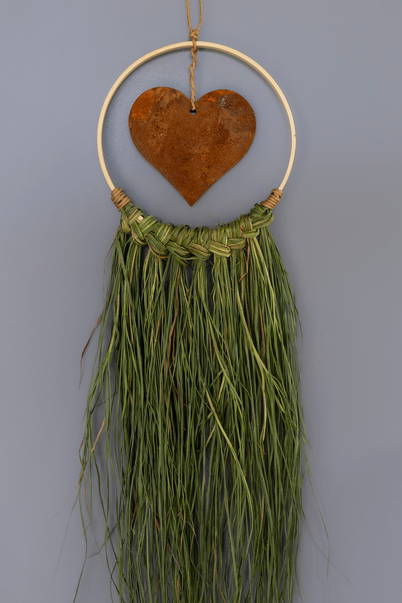 Holz. Ton. Draht. Ranken. Filz. Blüte. Sand.
