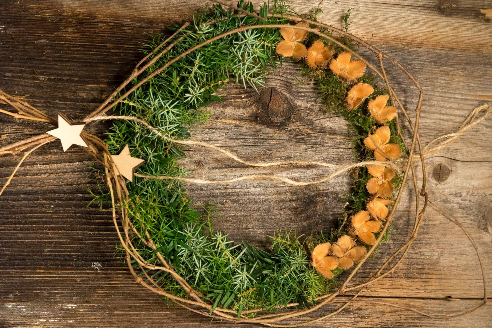 Auf der Suche nach einer Geschenksidee? Ich befülle Holzkisten mit Werkstücken. Jede Kiste ist gefüllt mit einem Tür/Wandkranz, einem Gehänge und einer kleinen Überraschung. Es ist mir wichtig, dass die dafür verwendeten Materialien regional sind und von mir der Jahreszeit entsprechend ausgesucht werden.